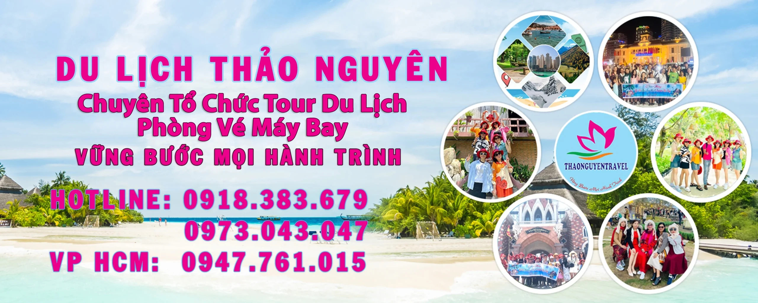 Du Lịch Thảo Nguyên là công ty Tổ Chức Tour Du Lịch – Phòng Vé Máy Bay uy tín trong lĩnh vực tổ chức sự kiện. Với kinh nghiệm 10 năm hoạt động và phát triển, công ty tổ chức Du Lịch Thảo Nguyên đã đồng hành với nhiều khách hàng lớn như: Ngân Hàng BIDV , Vietcombank, MB Bank, Citibank, Hoa Sen Gruop, VinGroup, Vinaphone…